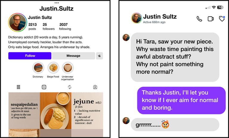 The critic for this piece is Justin Sultz, a fictional character whose loud opinions and beige food diet fuel his constant need to comment. His line appears on the companion giclee print.